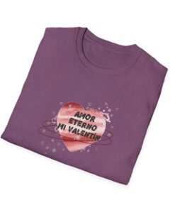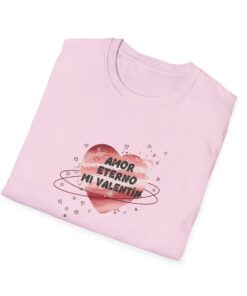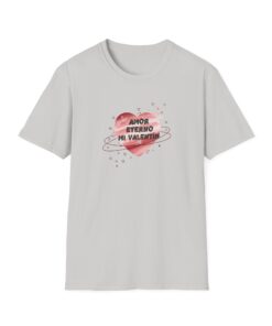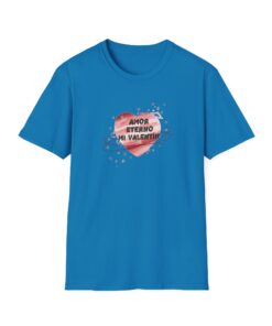 A lightweight, breathable tee that carries a tender, hand-painted heart and the words “Amor eterno mi valiente.” Soft to the touch and easy to wear, it settles into everyday life — morning coffee, slow walks, or quiet evenings with someone you love. The subtle watercolor heart and orbiting lines feel intimate and slightly vintage, like a love note tucked into a book. This tee layers beneath a denim jacket or stands on its own on a warm day, adding a gentle, personal statement without shouting. It’s made to be worn often and washed well, keeping that worn-in comfort and the design’s soft palette intact.