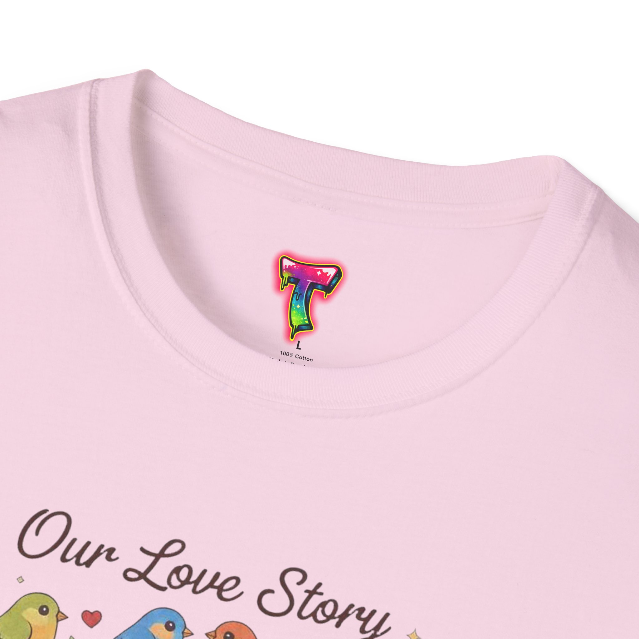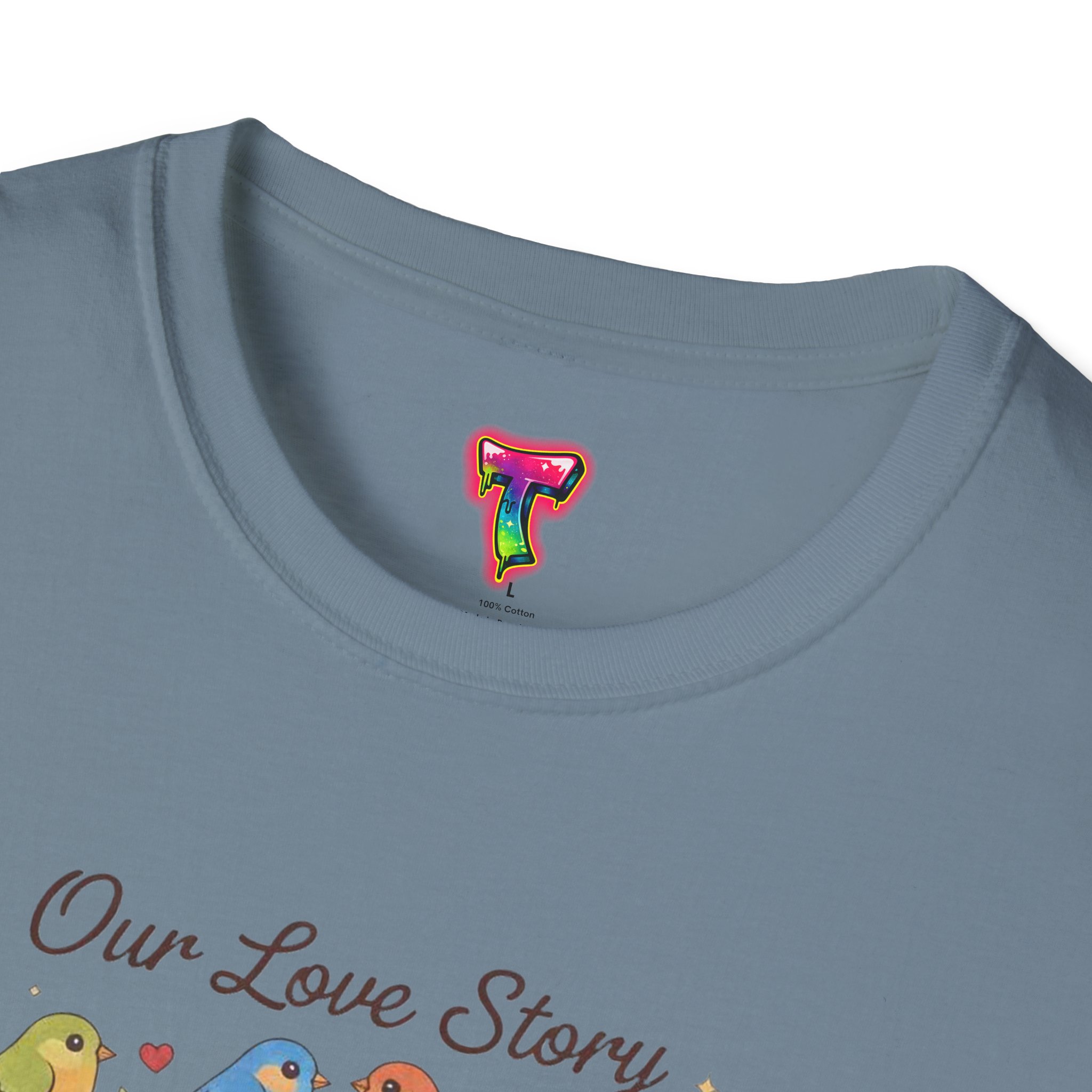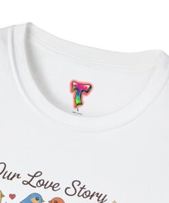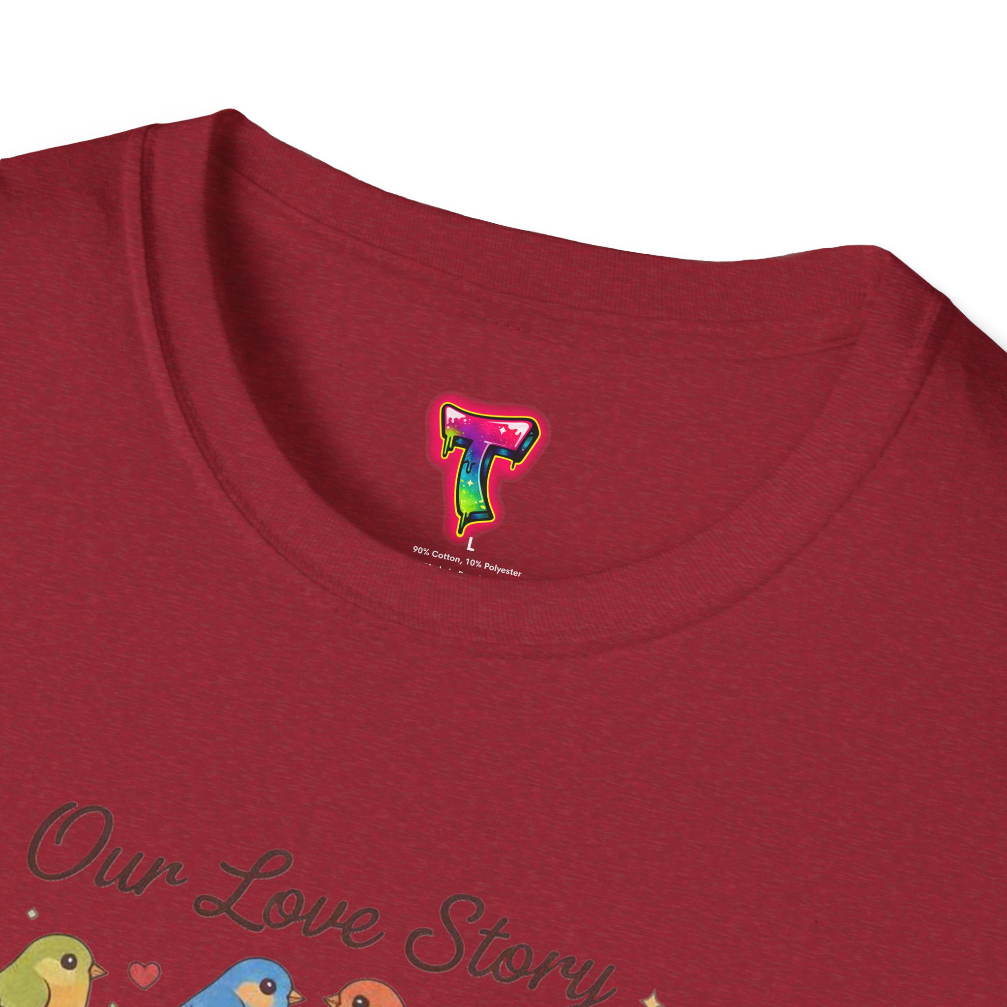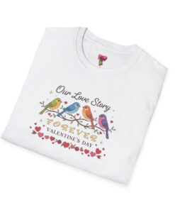 “Celebrate a timeless connection with our ‘Our Love Story’ vintage bird tee. Featuring four beautifully detailed, colorful birds perched on a floral branch, this design captures the romantic essence of nature. It’s an exquisite gift for bird enthusiasts, nature lovers, or that special someone who makes every chapter of your story beautiful.”