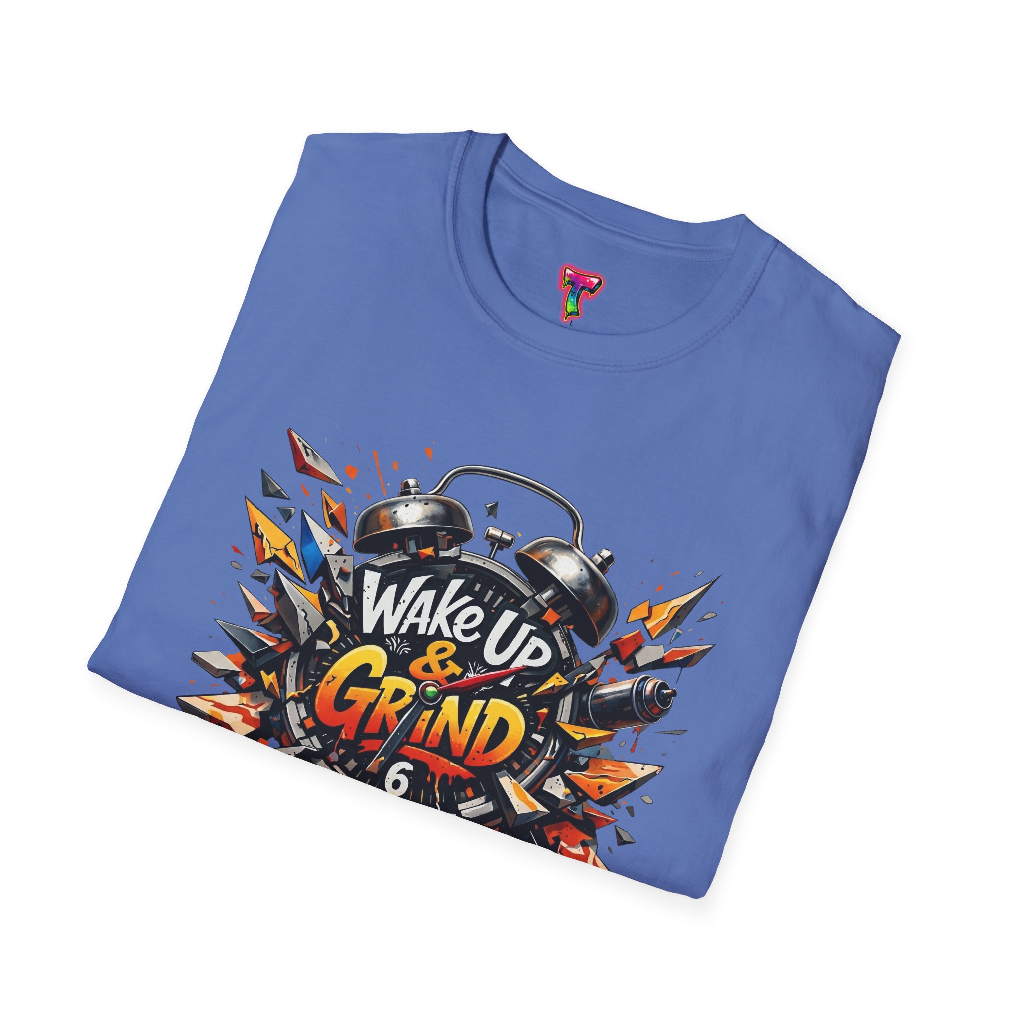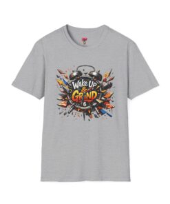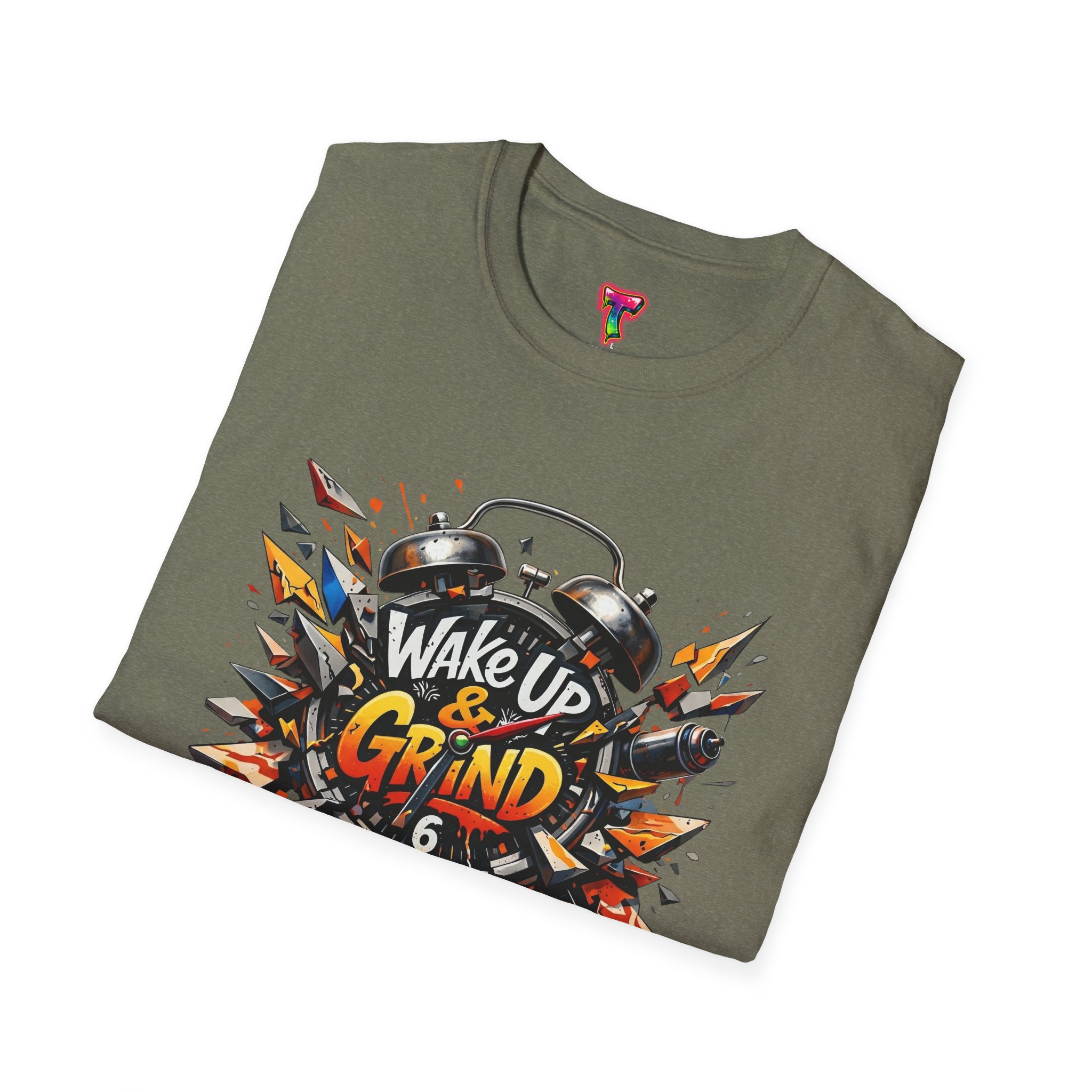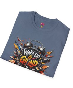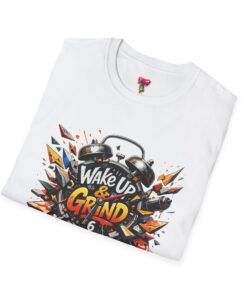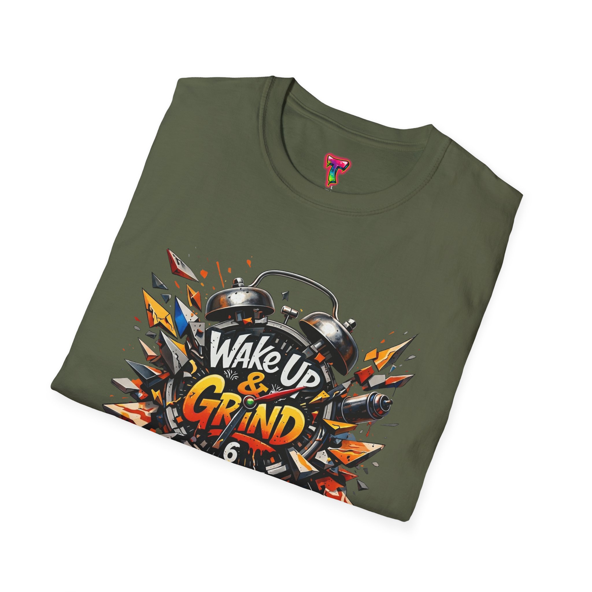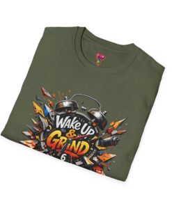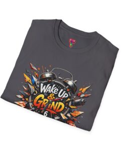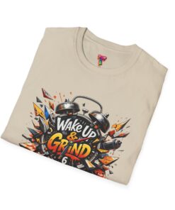 Motivational “Wake Up & Grind” typography design featuring a bold coffee cup graphic surrounded by energetic splash effects and dynamic lettering. This design blends hustle culture with urban streetwear aesthetics, making it perfect for entrepreneurs, coffee lovers, students, and anyone driven by ambition. The vibrant colors and graffiti-inspired details create an eye-catching statement piece ideal for everyday casual wear. Perfect for t-shirts, hoodies, tote bags, mugs, and other print-on-demand products.