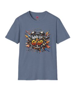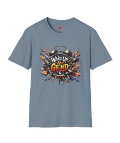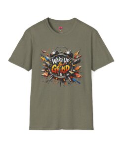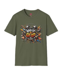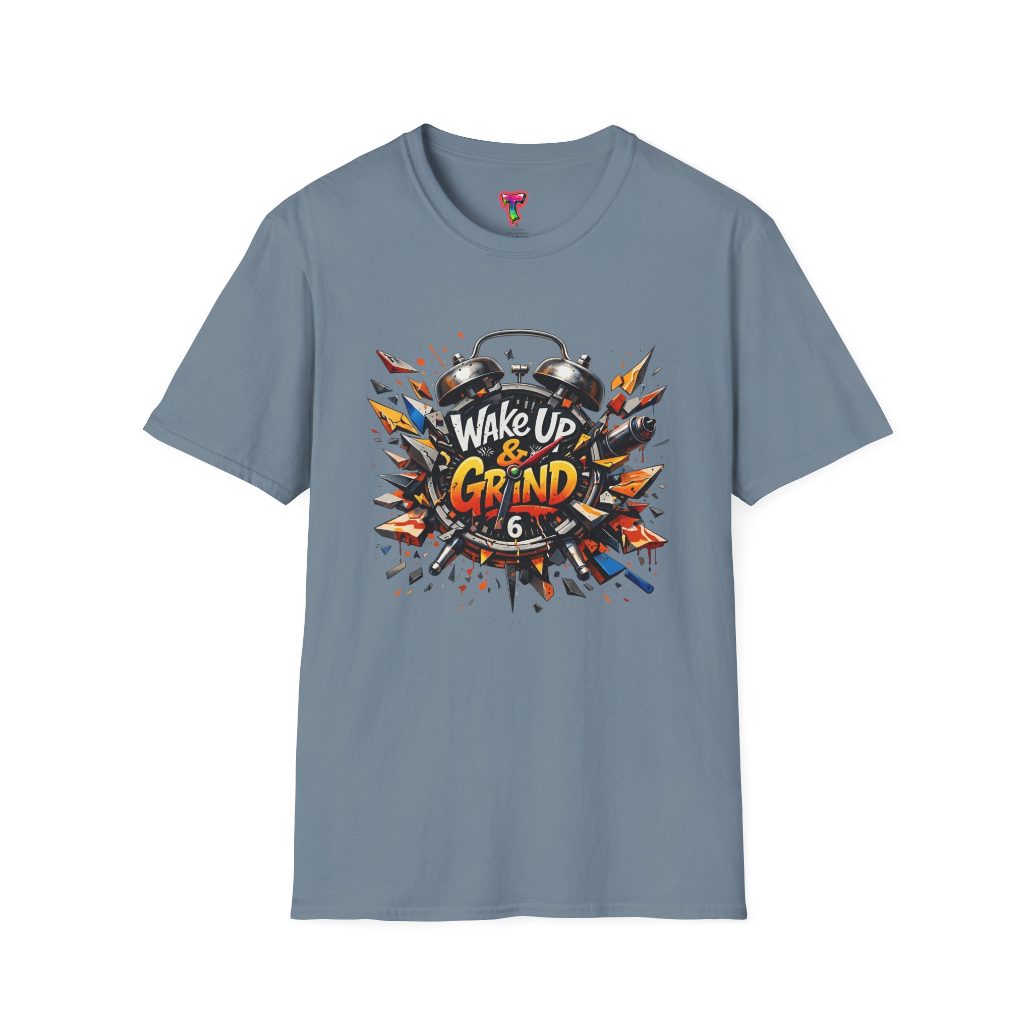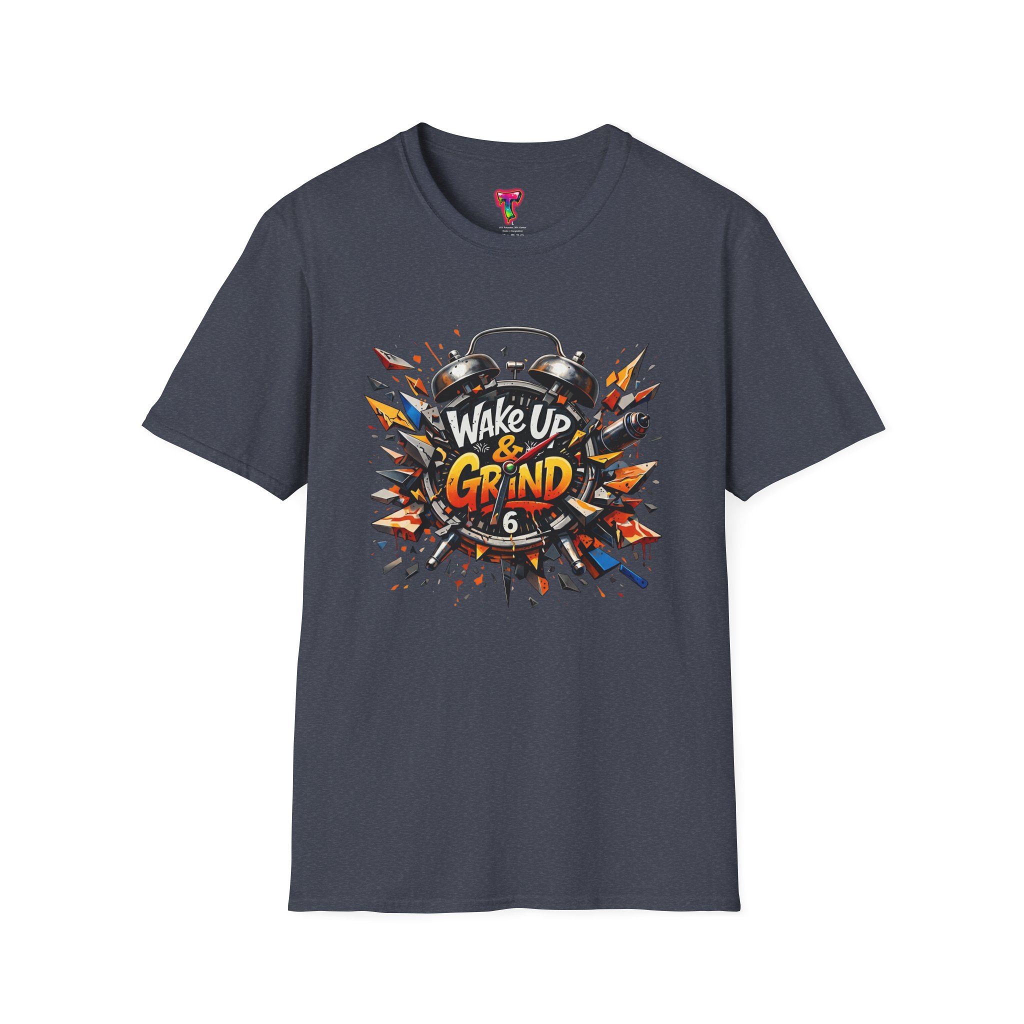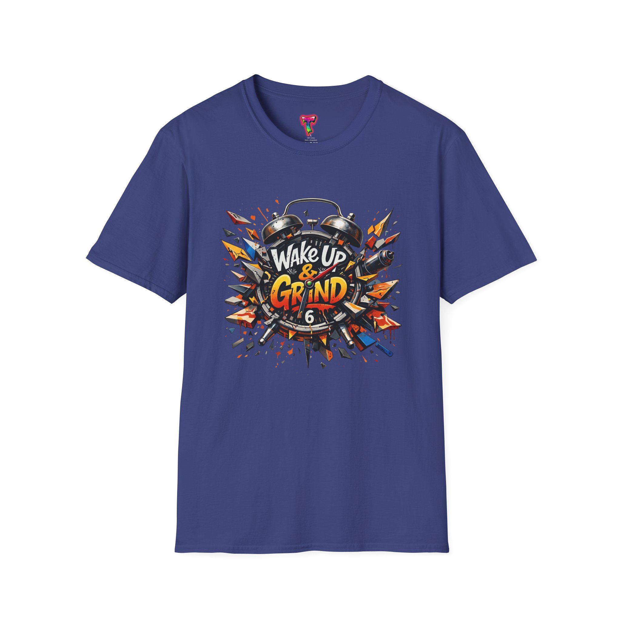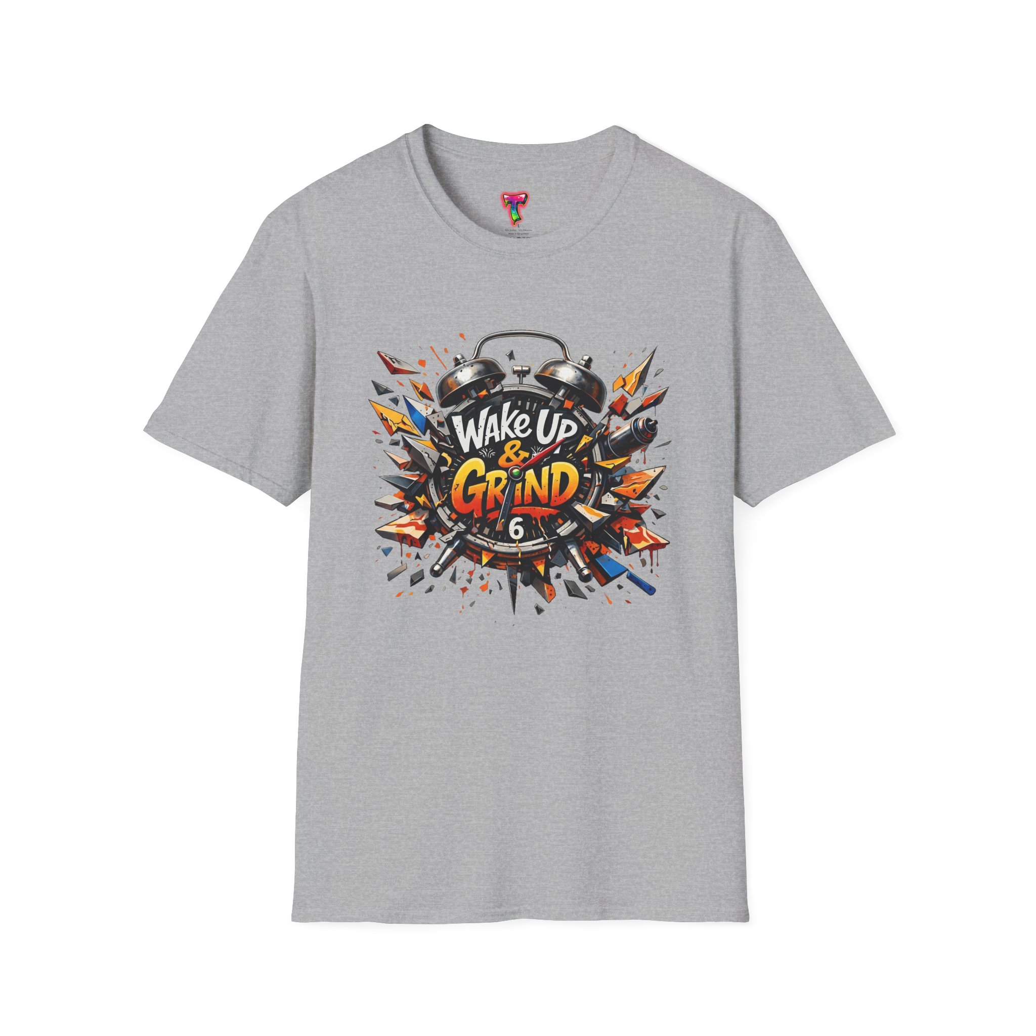 Motivational “Wake Up & Grind” typography design featuring a bold coffee cup graphic surrounded by energetic splash effects and dynamic lettering. This design blends hustle culture with urban streetwear aesthetics, making it perfect for entrepreneurs, coffee lovers, students, and anyone driven by ambition. The vibrant colors and graffiti-inspired details create an eye-catching statement piece ideal for everyday casual wear. Perfect for t-shirts, hoodies, tote bags, mugs, and other print-on-demand products.