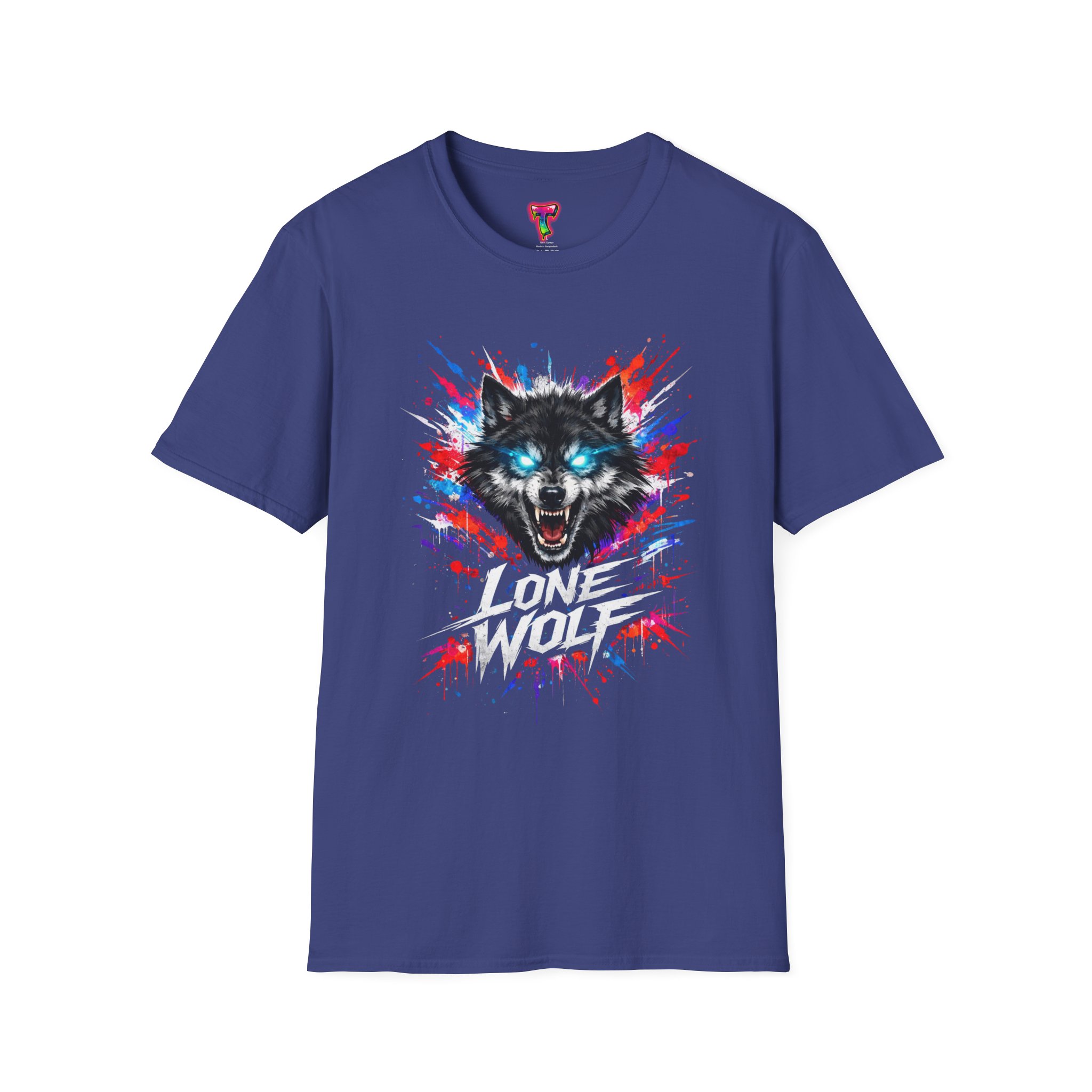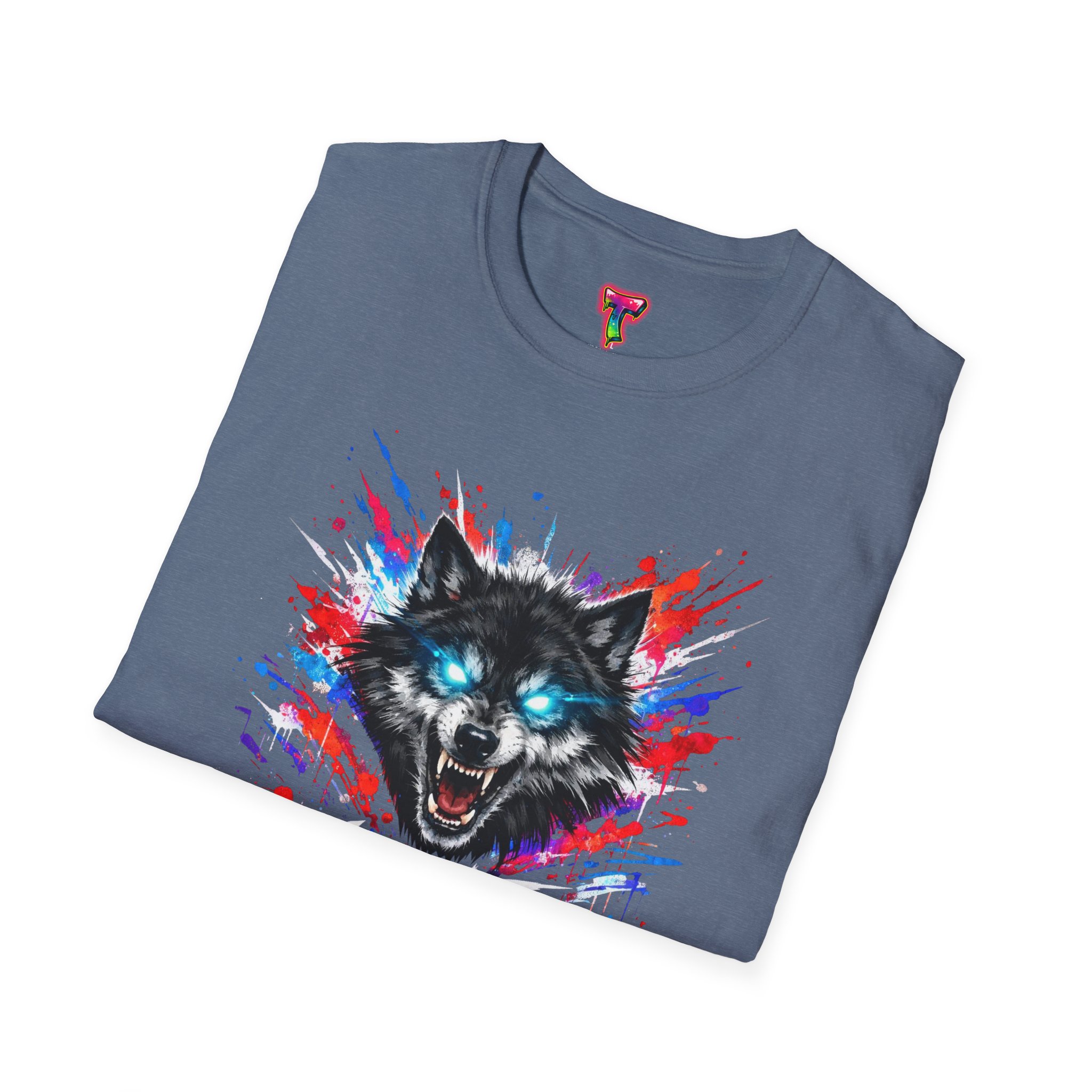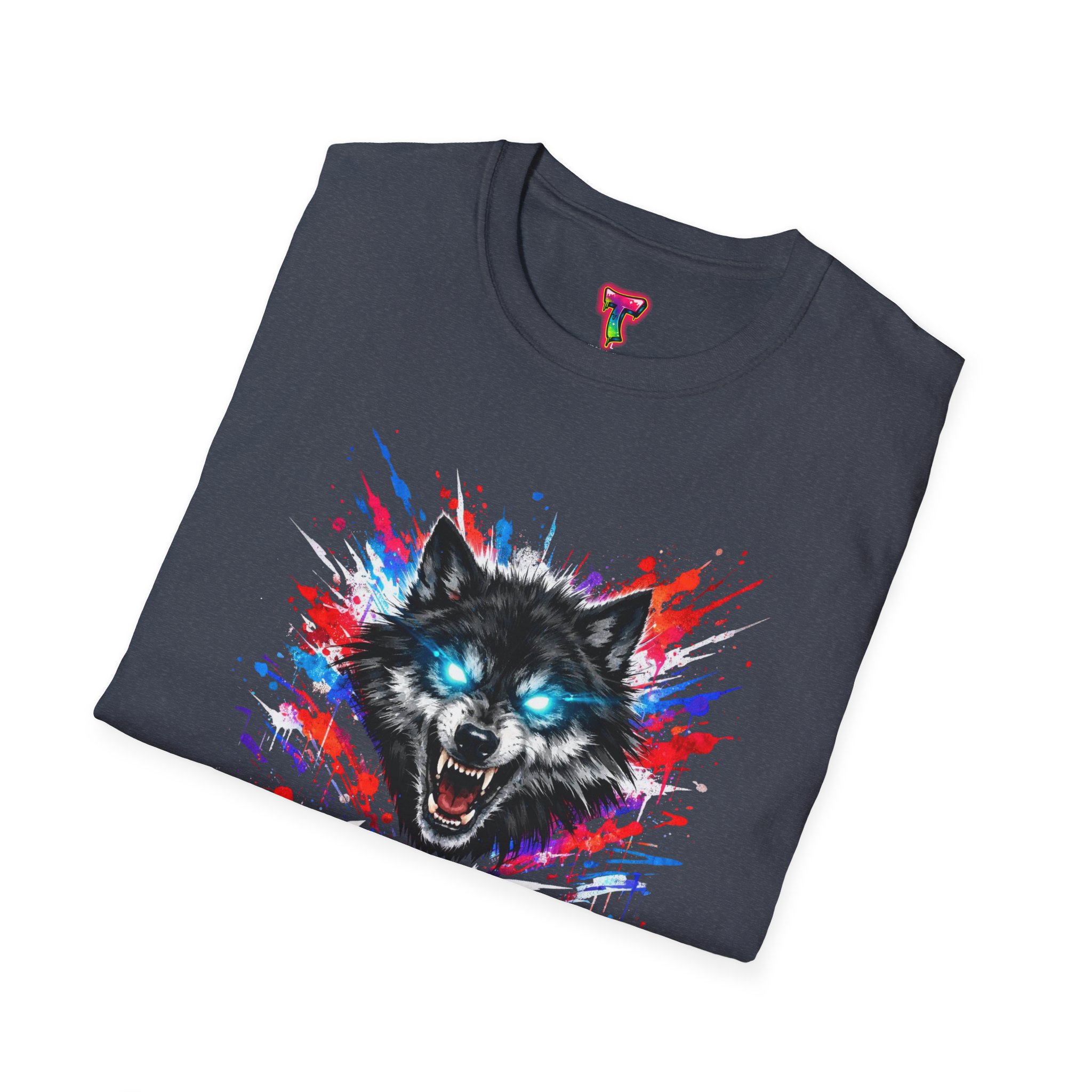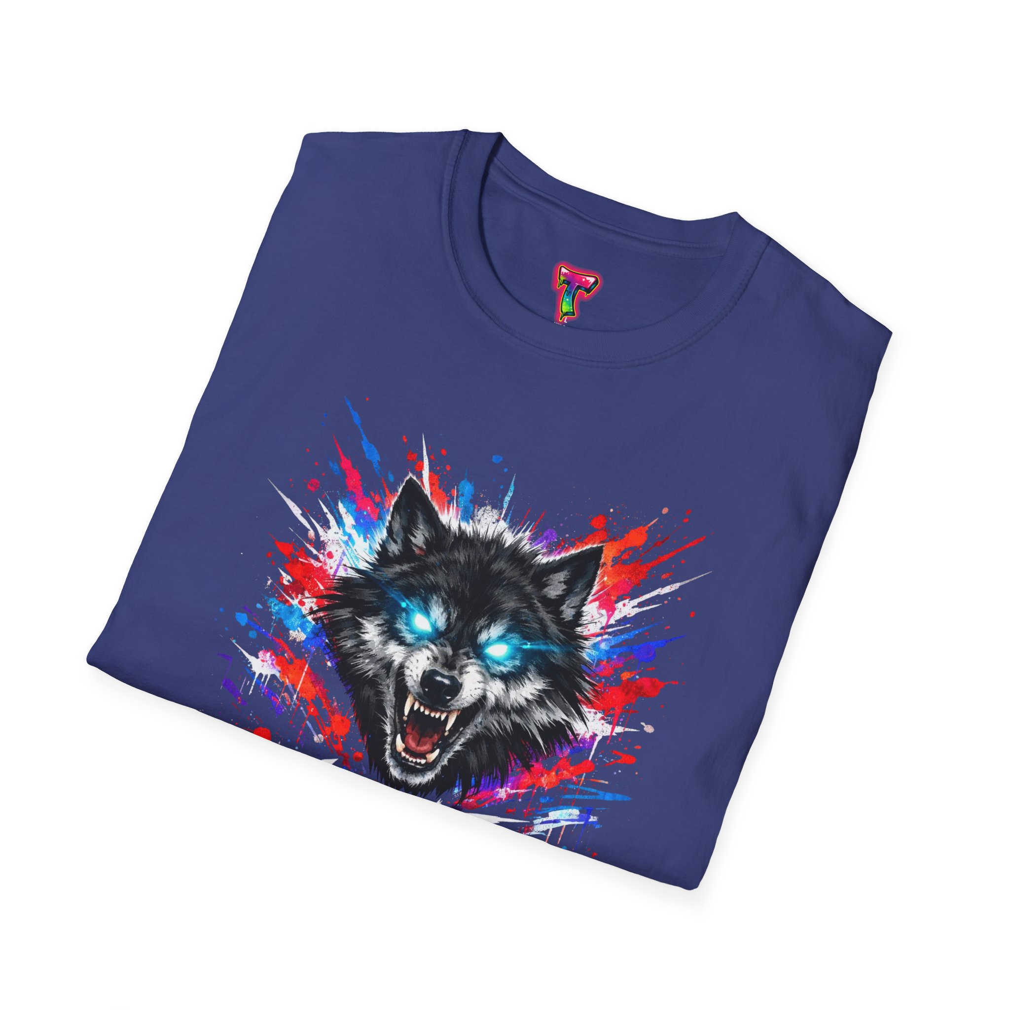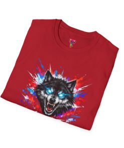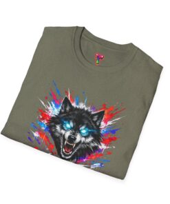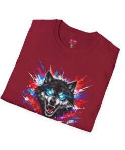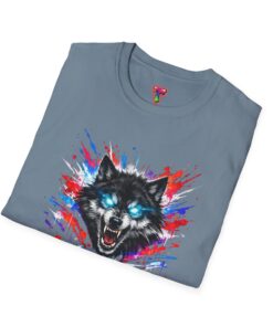 This lightweight cotton tee wears like a second skin and roars with attitude. A vivid, snarling wolf design bursts from the chest in electric blues and splashes of red, giving the shirt a raw, energetic edge. It’s breathable for long days and sturdy enough to keep the print crisp wash after wash. Wear it layered under a jacket for late-night street runs or alone when you want to stand out at a show. The tactile ribbed collar and tear-away label keep comfort front-and-center, while the tubular knit silhouette gives a clean, seamless look. This shirt fits into an adventurous wardrobe—lived-in, loud, and unapologetically bold.