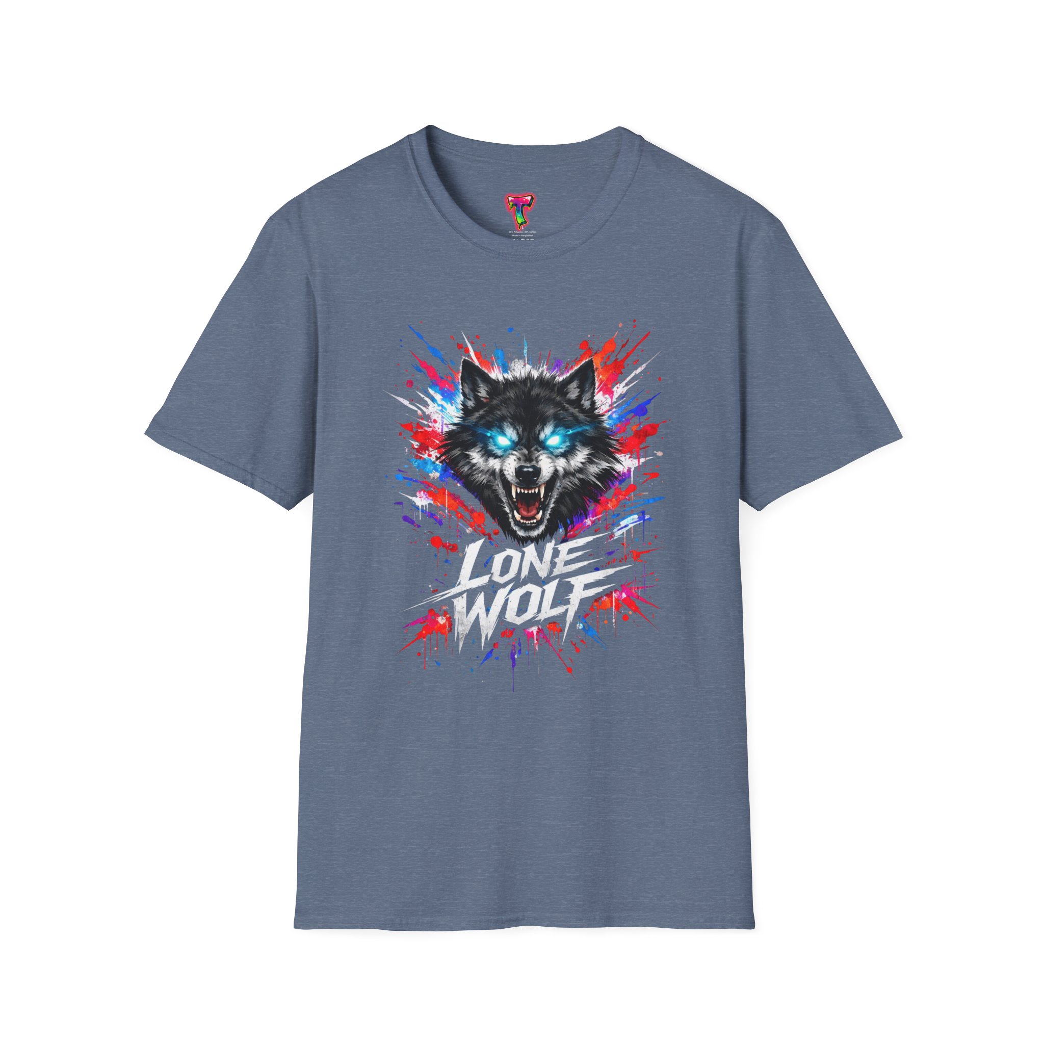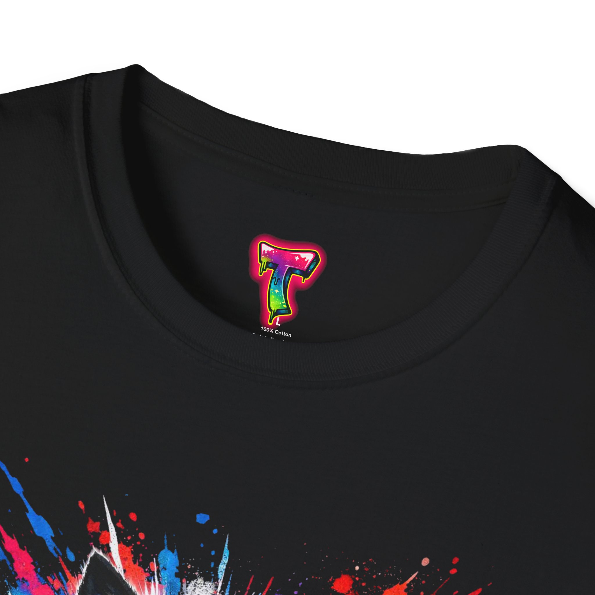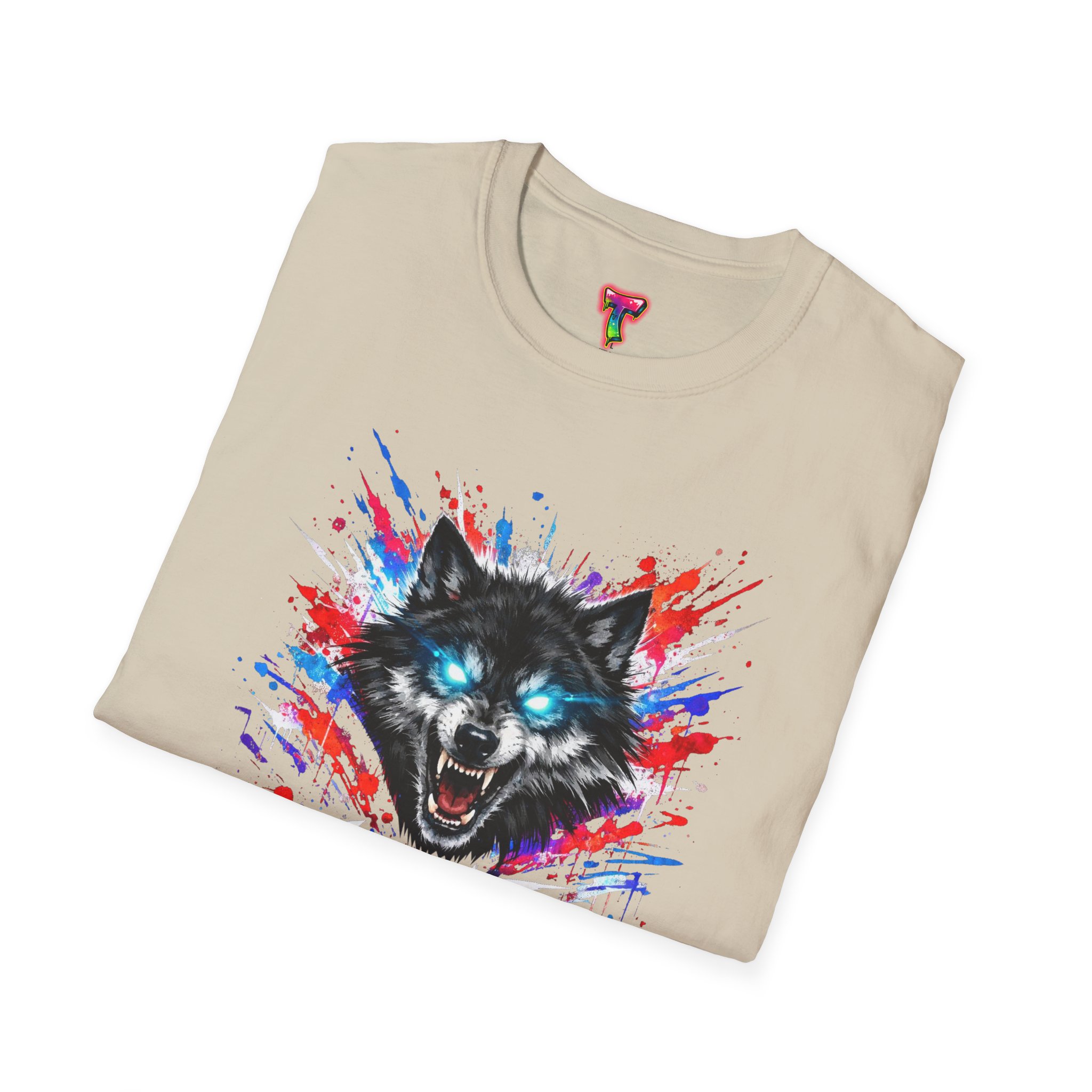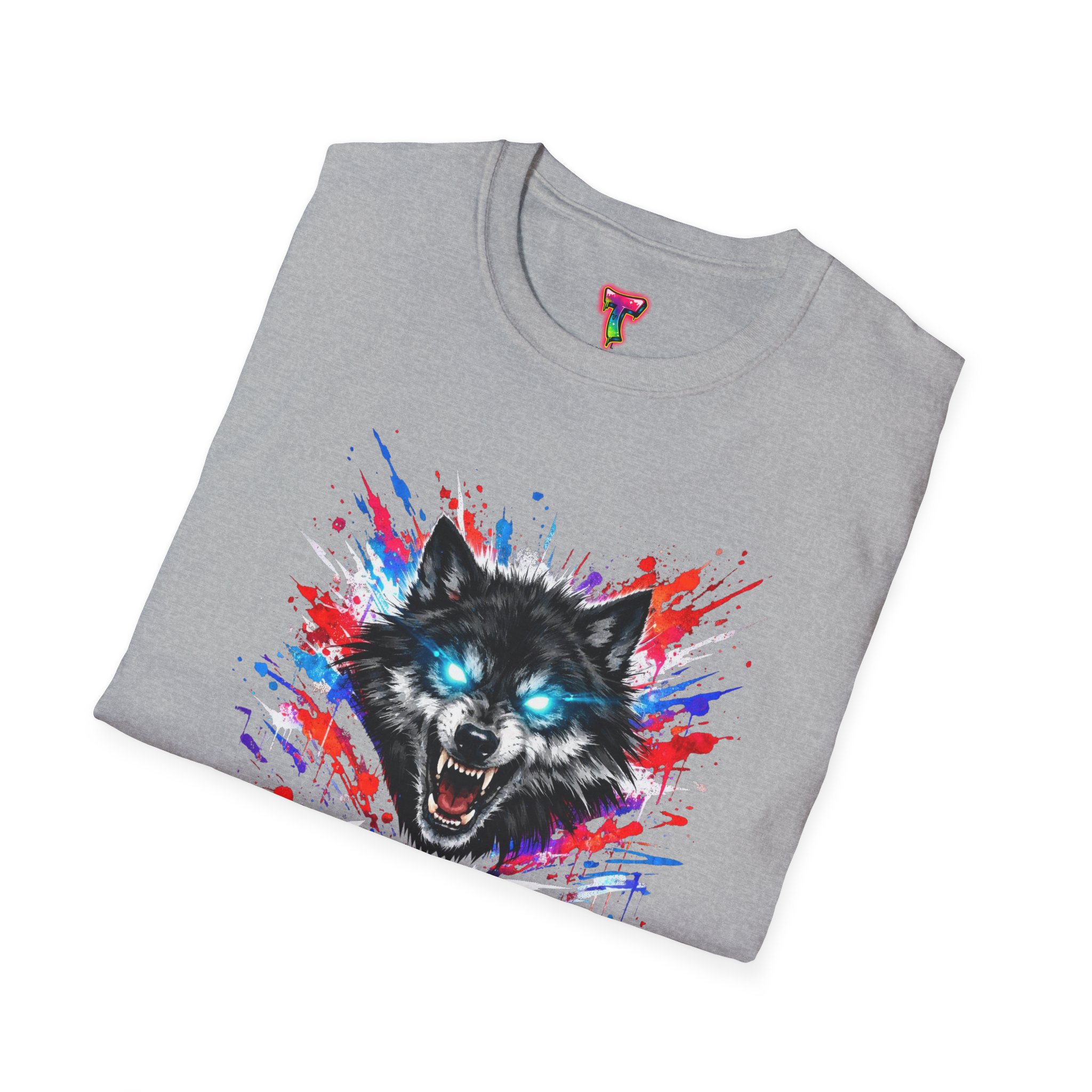 This lightweight cotton tee wears like a second skin and roars with attitude. A vivid, snarling wolf design bursts from the chest in electric blues and splashes of red, giving the shirt a raw, energetic edge. It’s breathable for long days and sturdy enough to keep the print crisp wash after wash. Wear it layered under a jacket for late-night street runs or alone when you want to stand out at a show. The tactile ribbed collar and tear-away label keep comfort front-and-center, while the tubular knit silhouette gives a clean, seamless look. This shirt fits into an adventurous wardrobe—lived-in, loud, and unapologetically bold.