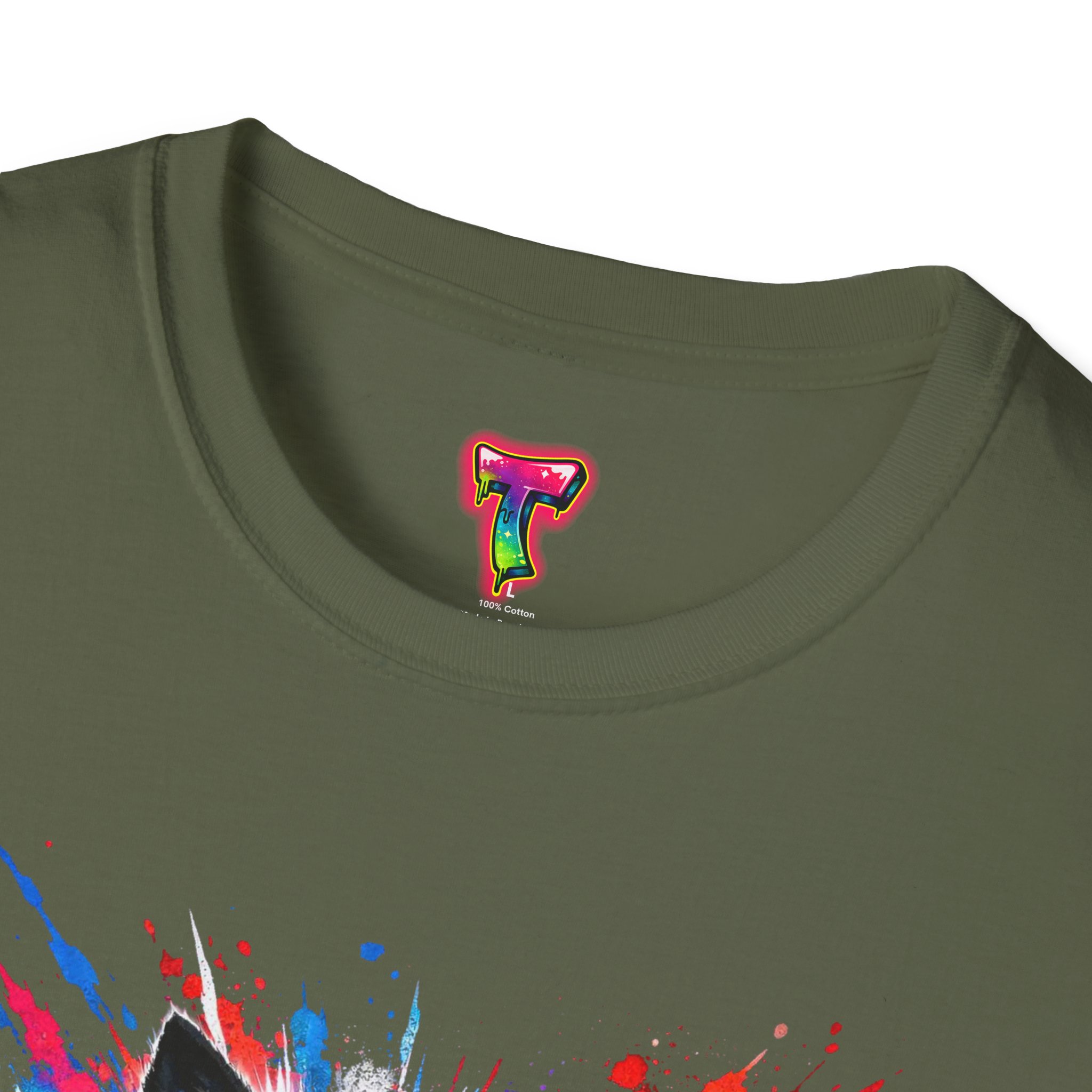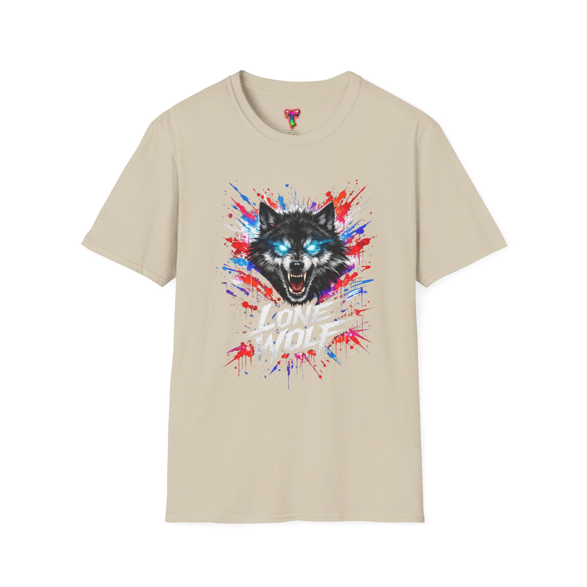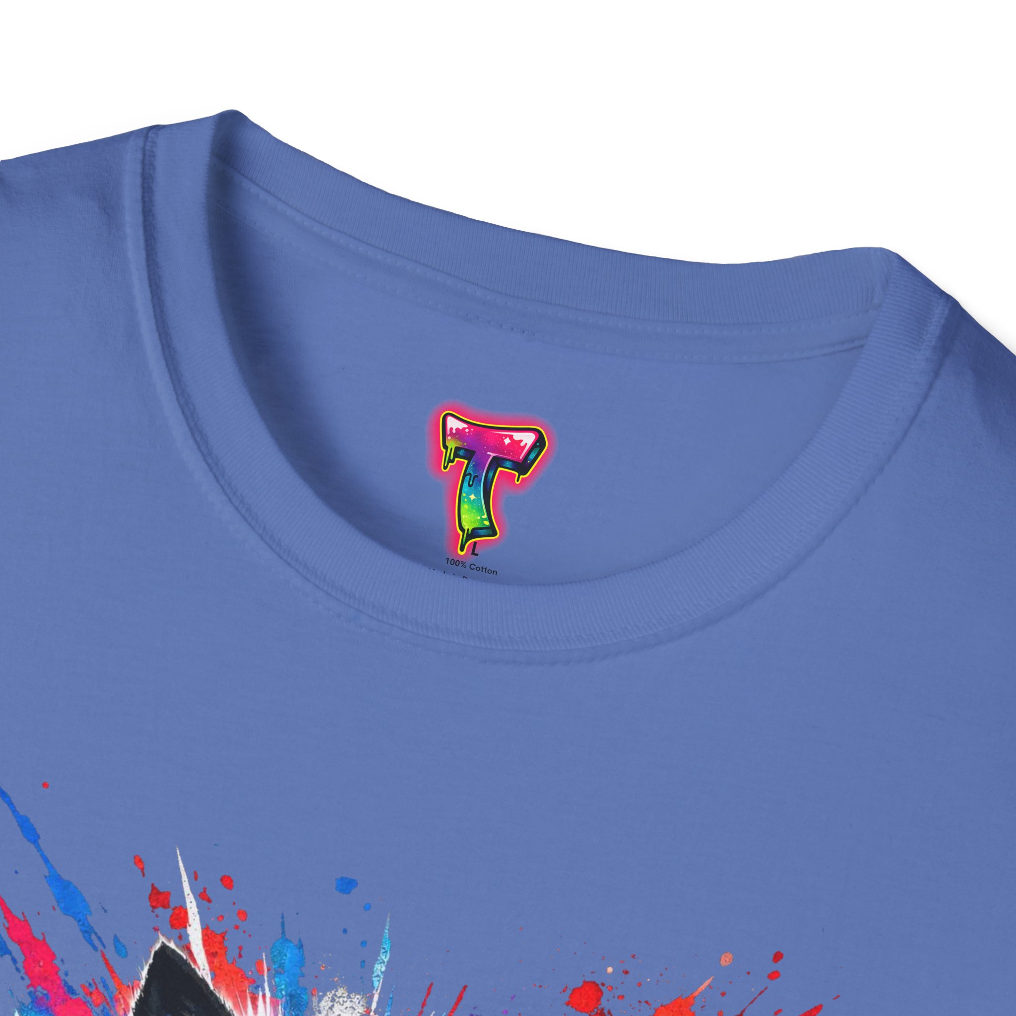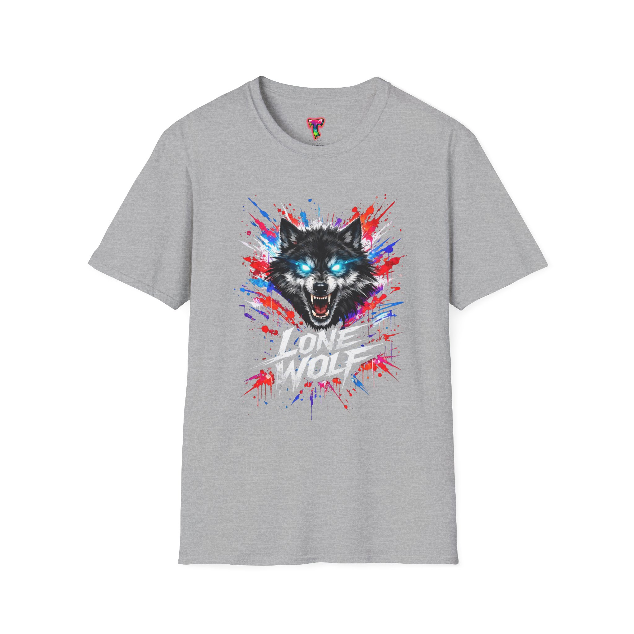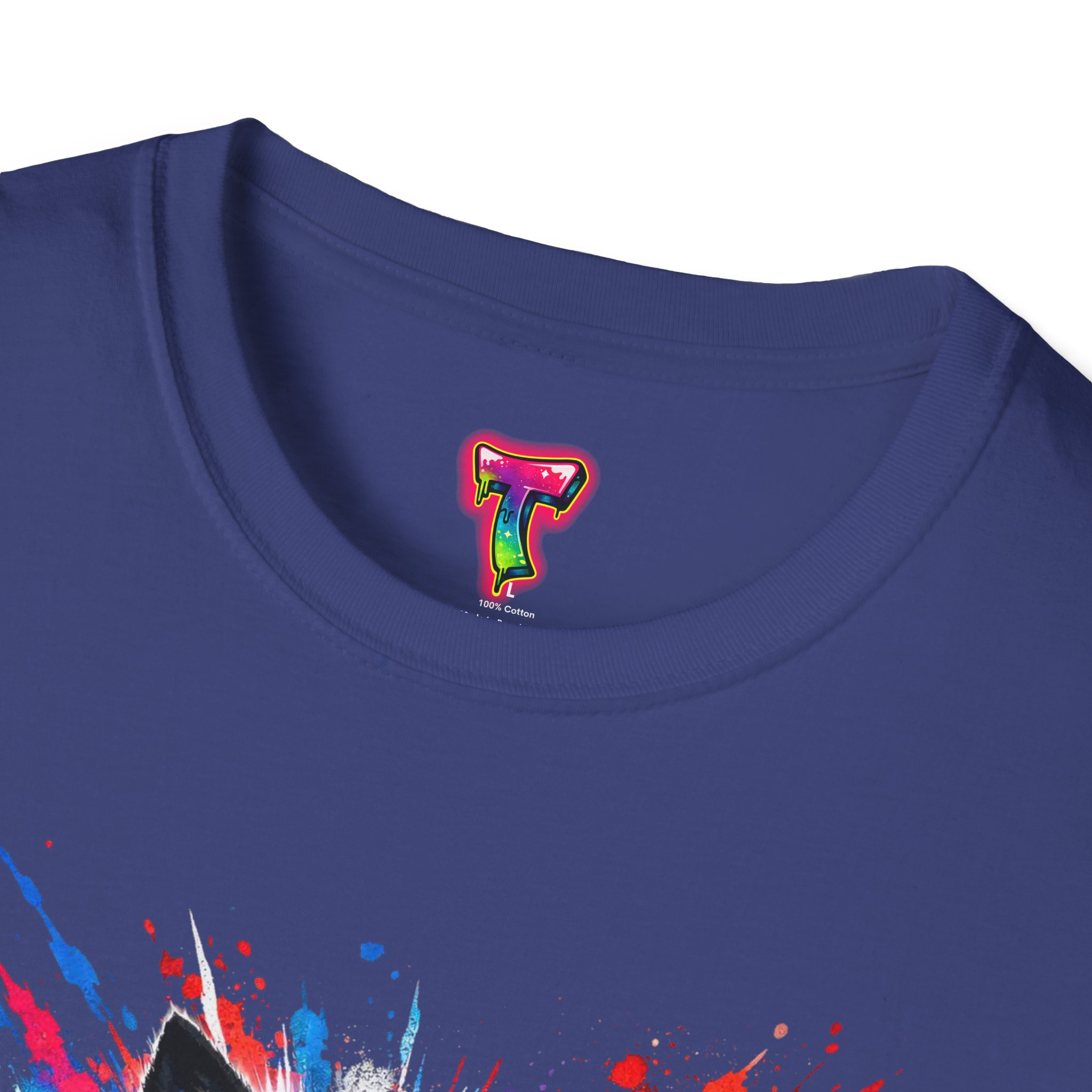 This lightweight cotton tee wears like a second skin and roars with attitude. A vivid, snarling wolf design bursts from the chest in electric blues and splashes of red, giving the shirt a raw, energetic edge. It’s breathable for long days and sturdy enough to keep the print crisp wash after wash. Wear it layered under a jacket for late-night street runs or alone when you want to stand out at a show. The tactile ribbed collar and tear-away label keep comfort front-and-center, while the tubular knit silhouette gives a clean, seamless look. This shirt fits into an adventurous wardrobe—lived-in, loud, and unapologetically bold.