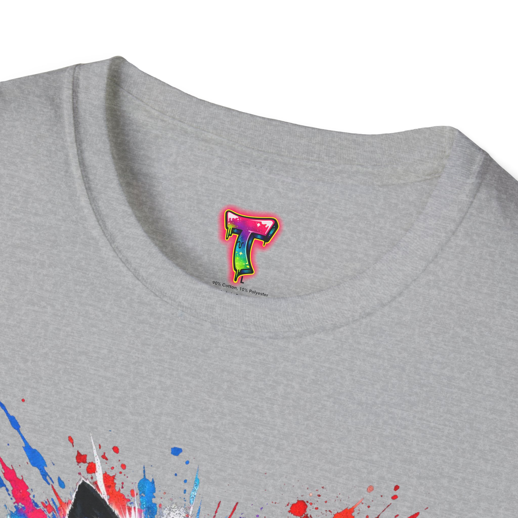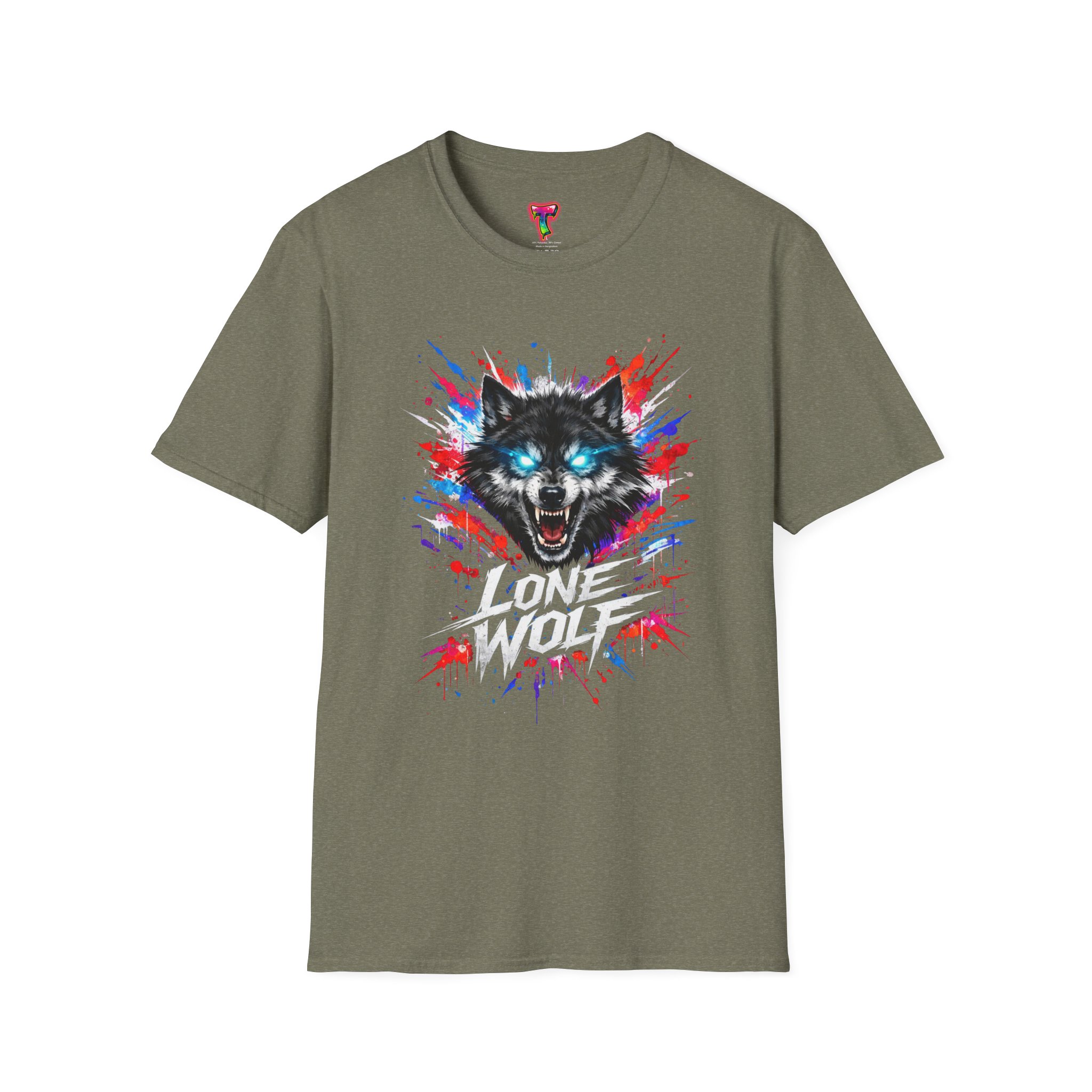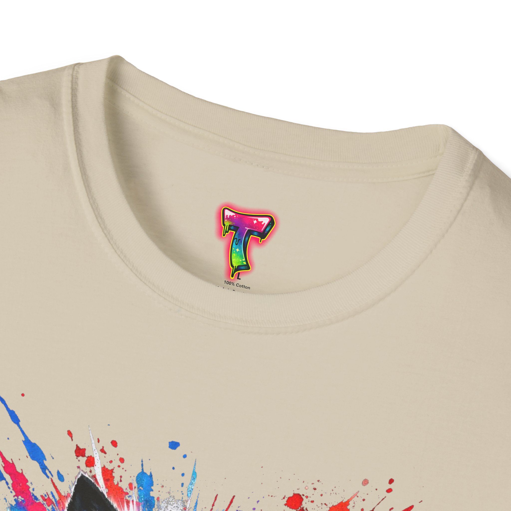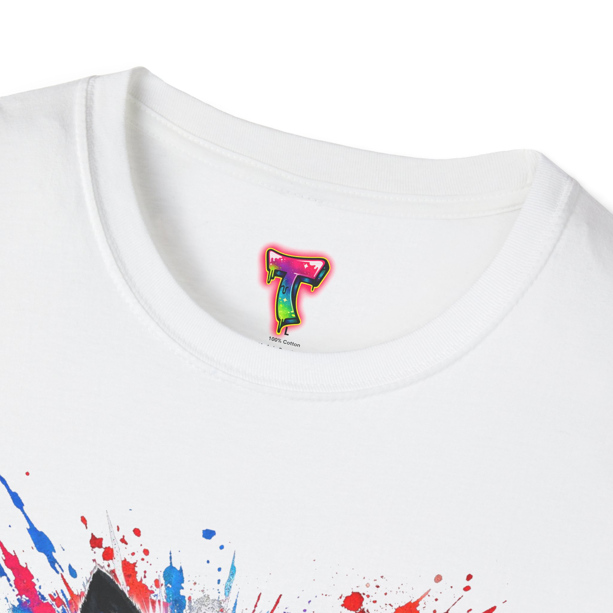 This lightweight cotton tee wears like a second skin and roars with attitude. A vivid, snarling wolf design bursts from the chest in electric blues and splashes of red, giving the shirt a raw, energetic edge. It’s breathable for long days and sturdy enough to keep the print crisp wash after wash. Wear it layered under a jacket for late-night street runs or alone when you want to stand out at a show. The tactile ribbed collar and tear-away label keep comfort front-and-center, while the tubular knit silhouette gives a clean, seamless look. This shirt fits into an adventurous wardrobe—lived-in, loud, and unapologetically bold.