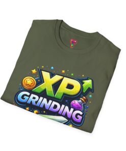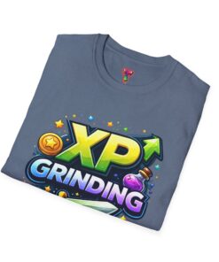 This lightweight, breathable tee carries a playful, gamer-ready design that literally says what you live for: XP Grinding. Bright, arcade-style lettering and familiar RPG icons—coin, potion, sword—sit front and center, turning a simple shirt into a statement about dedication, late-night raids, and steady progress. The soft ring-spun cotton feels comfortable whether you’re streaming, leveling up with friends, or just lounging between sessions. Subtle details like a tear-away label and reinforced shoulders keep it wearable after repeated washes. Wear it to game nights, convention days, or while you chase that next milestone—this shirt blends everyday comfort with unmistakable gaming energy.